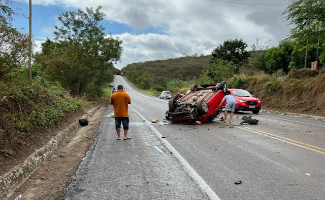 Já nesta terça-feira (04), o condutor de um veículo Fiesta, de cor vermelha, perdeu o controle da direção e capotou o carro, na BR-324, próximo à comunidade do Escôncio.