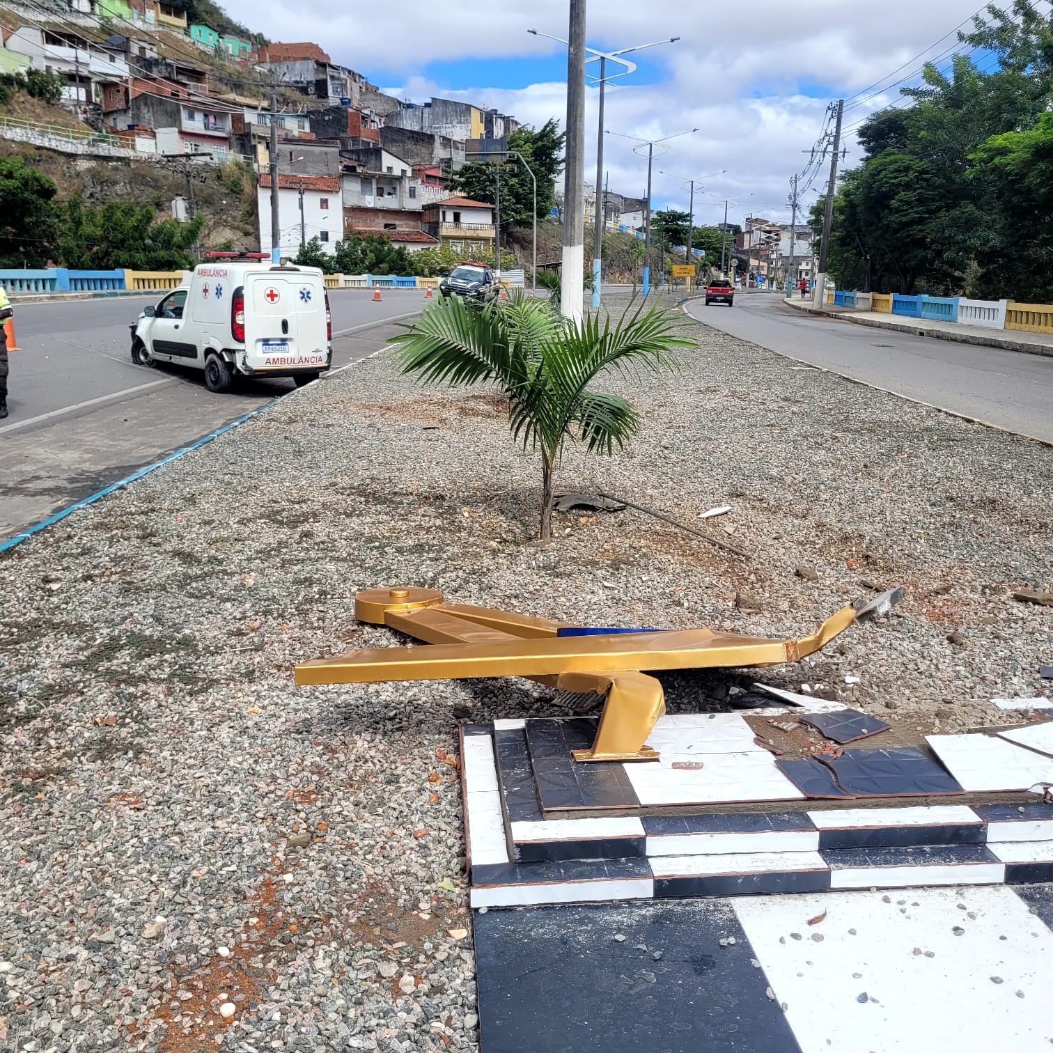 Segundo informações fornecidas pela Guarda Civil Municipal, o motorista de uma ambulância, que vinha de Santo Antônio de Jesus com destino a Ourolândia, perdeu o controle do veículo e colidiu com uma estátua da Maçonaria, no canteiro central da pista.